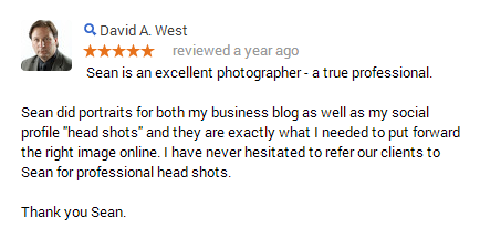 "I had my business head shots done by Sean recently. This was the first time working with Sean and I was very impressed with the quality of his work and fast turn around time."