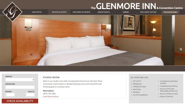 The Glenmore Inn & Convention Centre needed all new photography for their website as well as for use on the various travel and booking sites. They needed a complete range of images that included the 8 different sizes/styles of guest rooms, the 3 specialty suites, and the 5 conferences rooms in their meeting center. These images are used to show the potential guests and event organizers exactly what they are going to get before they make a reservation.