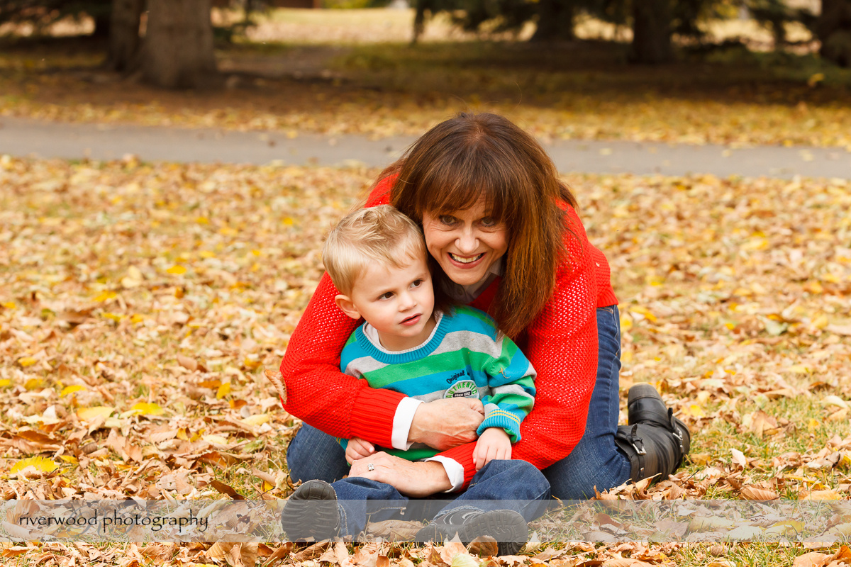 Edworthy Park is a wonderful location for Calgary Fall Portrait sessions. It’s a nicely sheltered park down in the river valley and the leaves all collect into huge piles that are fun to run, jump, and play in. There is plenty of color around and it’s really easy to get active kids and families in on the action. Everyone has a great time throwing leaves at each other which makes them happy enough to do a few great posed family portraits too.